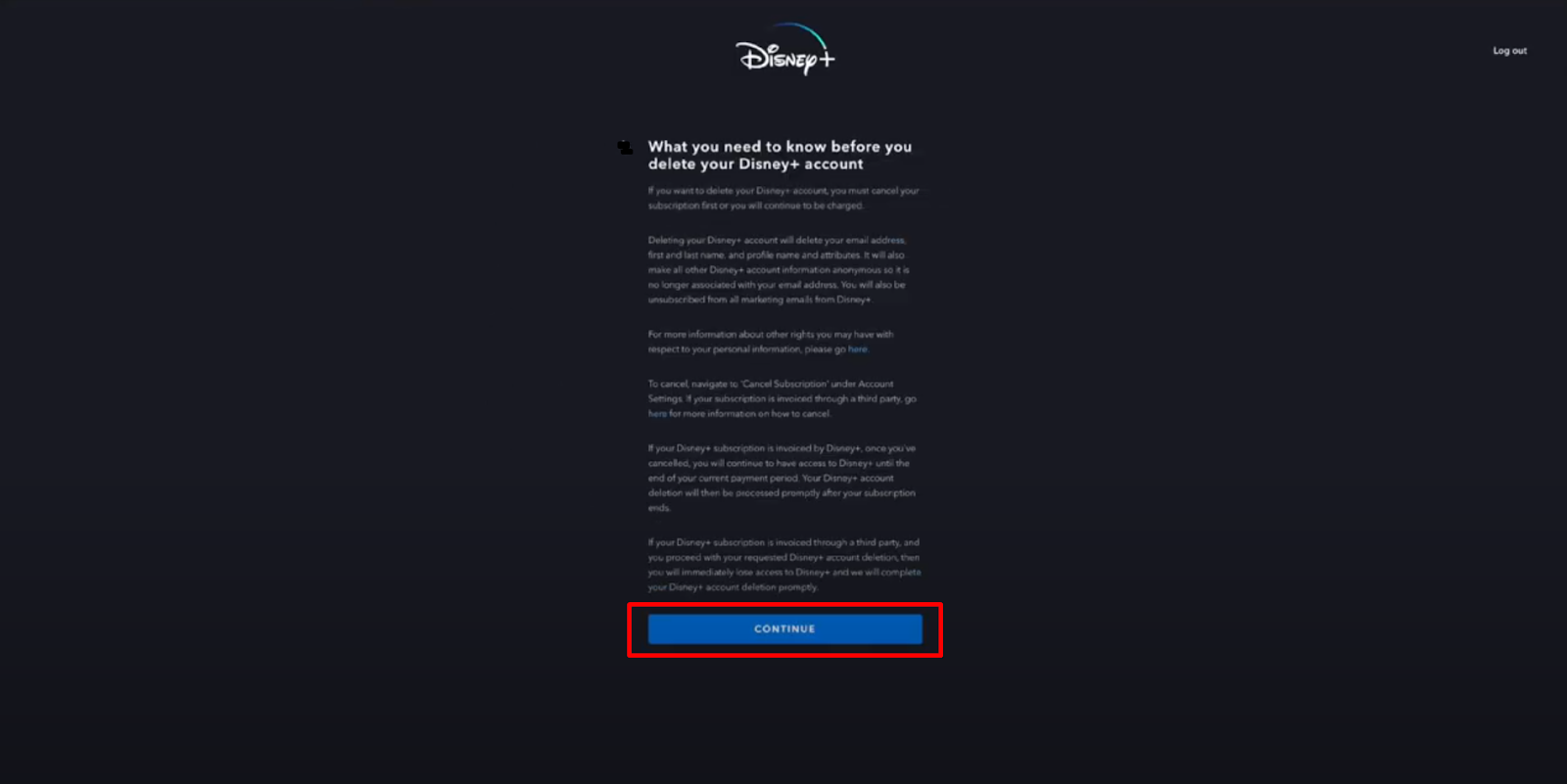 This means you will lose your watchlist, viewing history, and downloaded content. If you ever want to return to the delighted world of Disney+, you'll also need to recreate your account.
