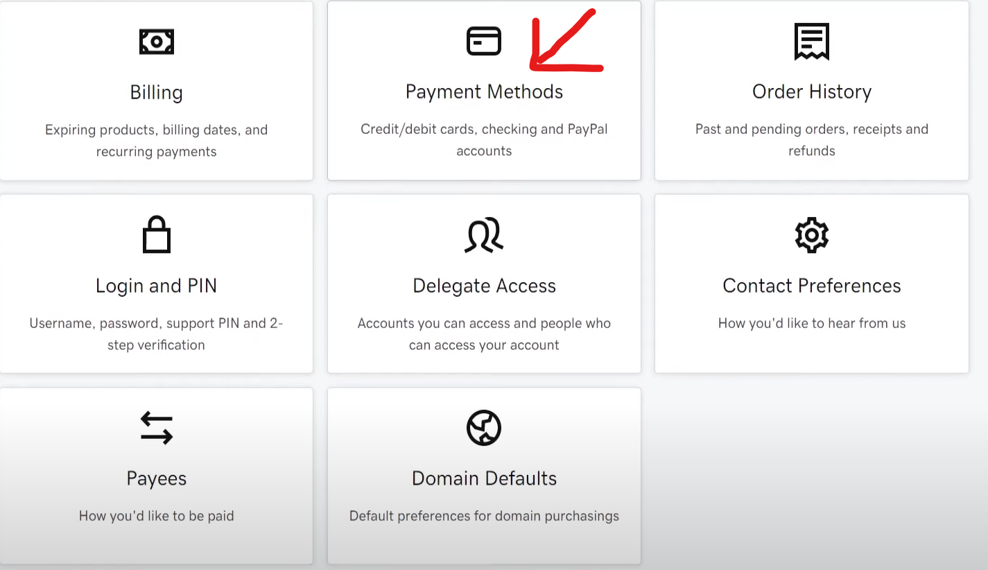 Remove any unnecessary payment methods from your GoDaddy account to reduce the chances of data theft.