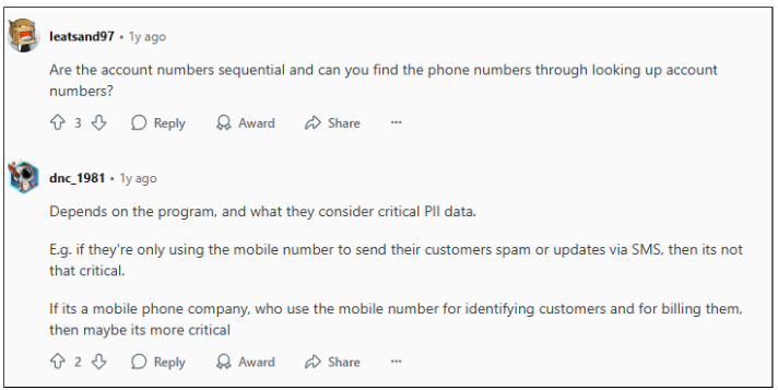 Also, if a phone number is exposed to a data breach, it can be exploited for spam, phishing attacks, identity fraud, or even social engineering schemes. These risks treat phone numbers as sensitive information that needs protection.