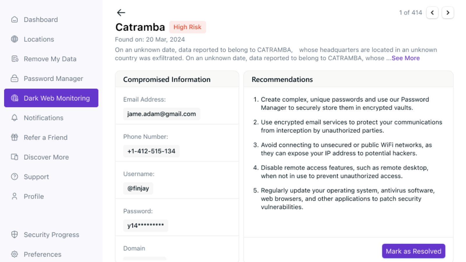 Once your PII is exposed or misused, it could end up on the dark web and could never be deleted. Preventive habits, like using strong passwords, enabling two-factor authentication, enabling dark web monitoring, and being cautious about sharing information, are far simpler and more effective in the long run.
