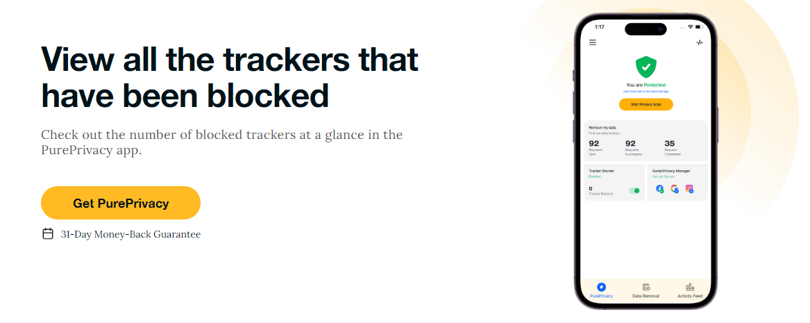 PurePrivacy, offers a broader range of features like dark web monitoring, tracker blocking, and social media privacy optimization, in addition to data removal.