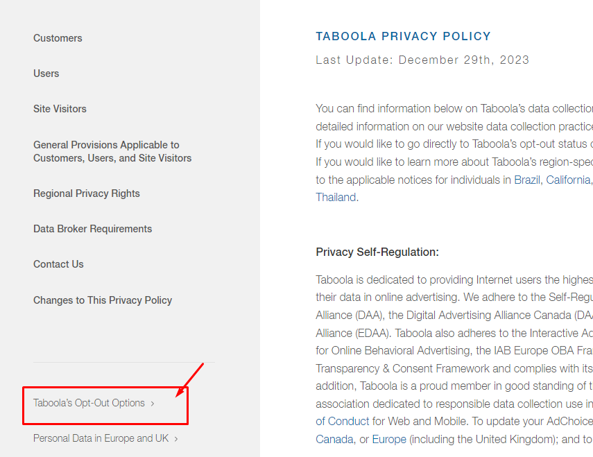 Step 4: On the privacy policy page, click on Taboola's Opt-Out Options. Then click on opt-out.