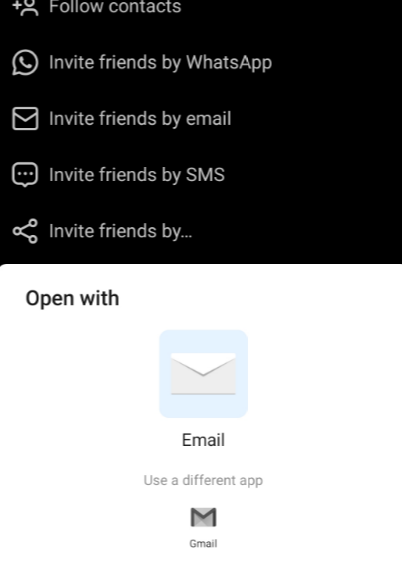 Step 1: Click Invite Friends by Email to access a pre-created email with a link to your Instagram account.